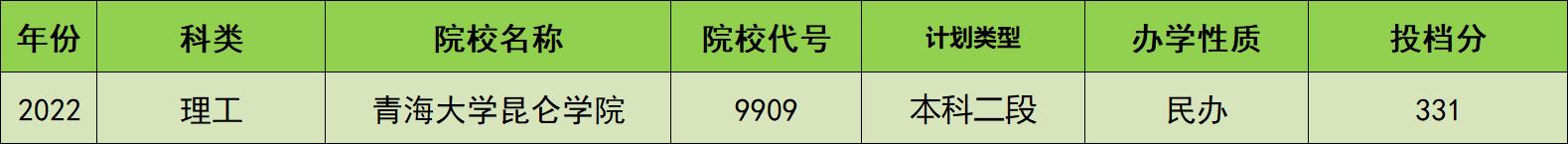 300至350分之间,青海本省只有青海大学昆仑学院可以报考,2022年最低投档分为331分。2020年5月20日,青海省人民政府关于印发《西宁大学筹建方案的通知》,拟将青海大学昆仑学院转设为西宁大学。
