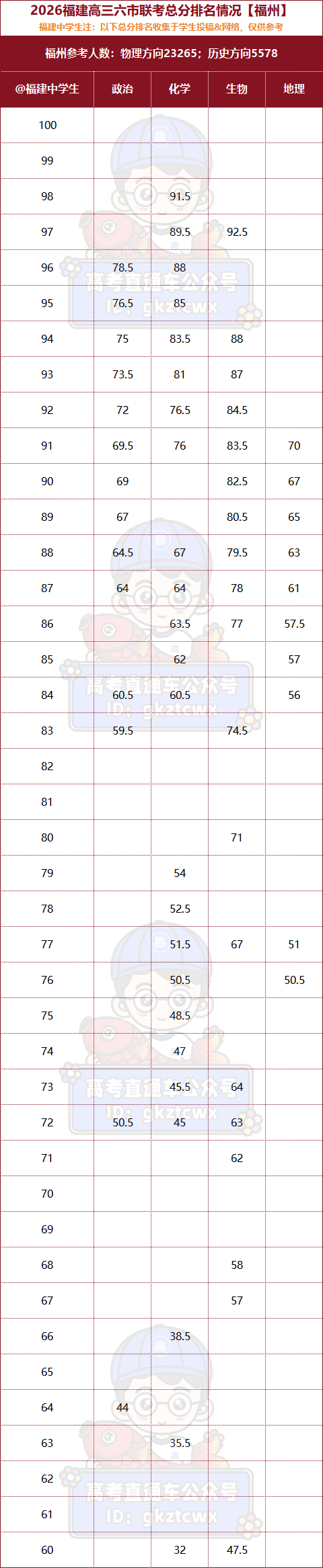 本文整理福建高三六市联考(1月质检)切线汇总,包括总分市排名以及赋分表,一起来了解下吧。