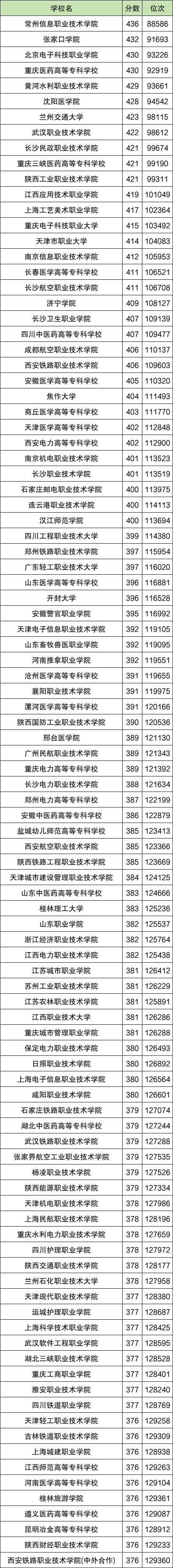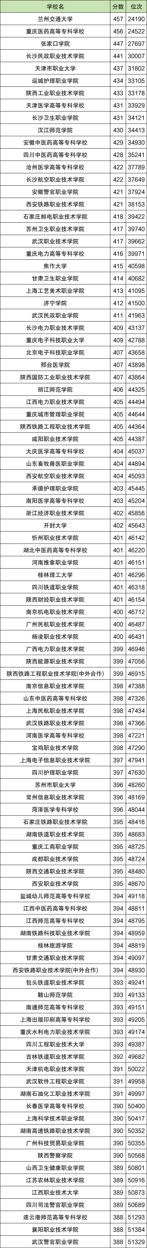 篇幅有限,下面仅列举2024陕西理科公办大专分数线Top100大学名单:
