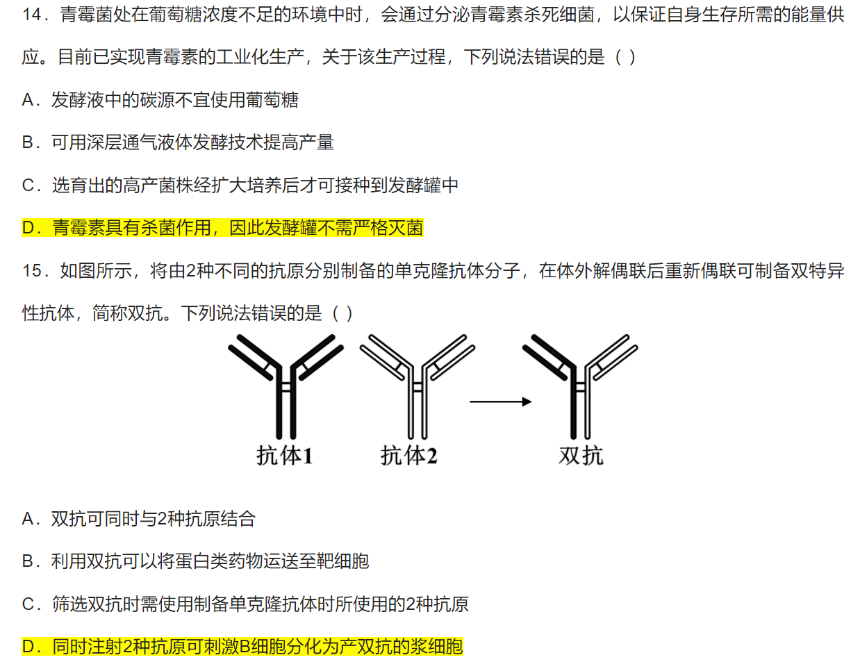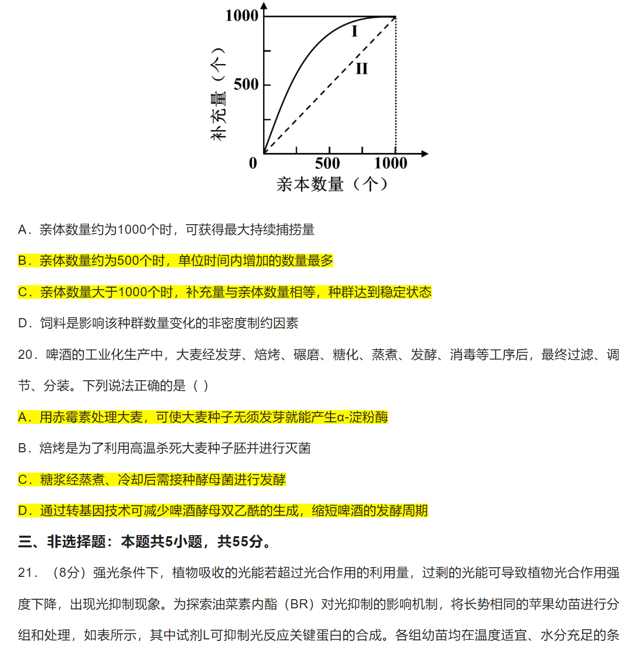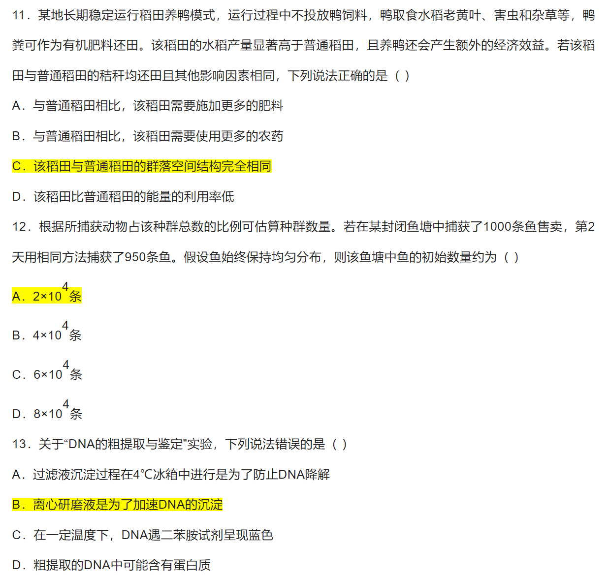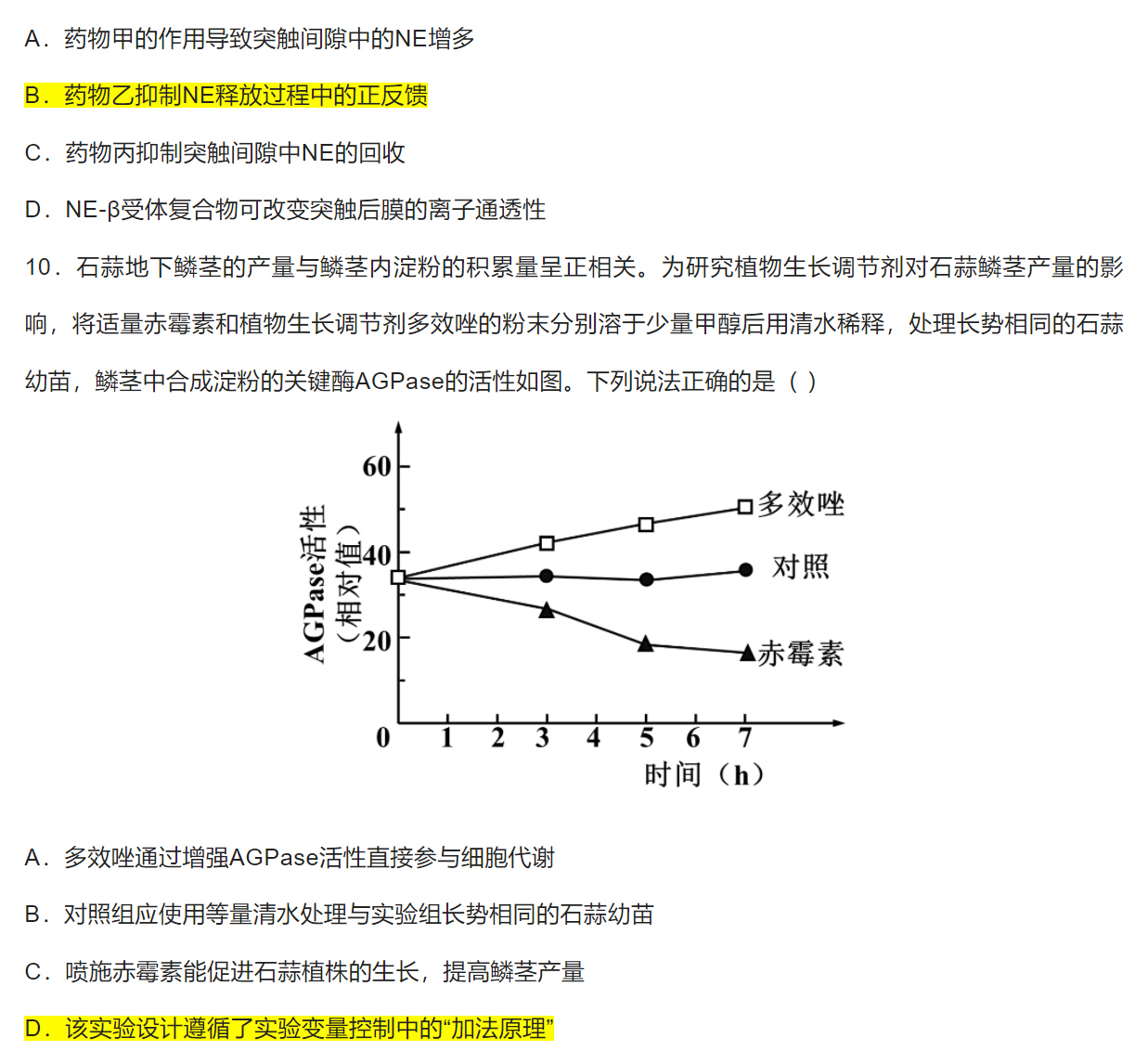 选择题答案为图中标黄选项。