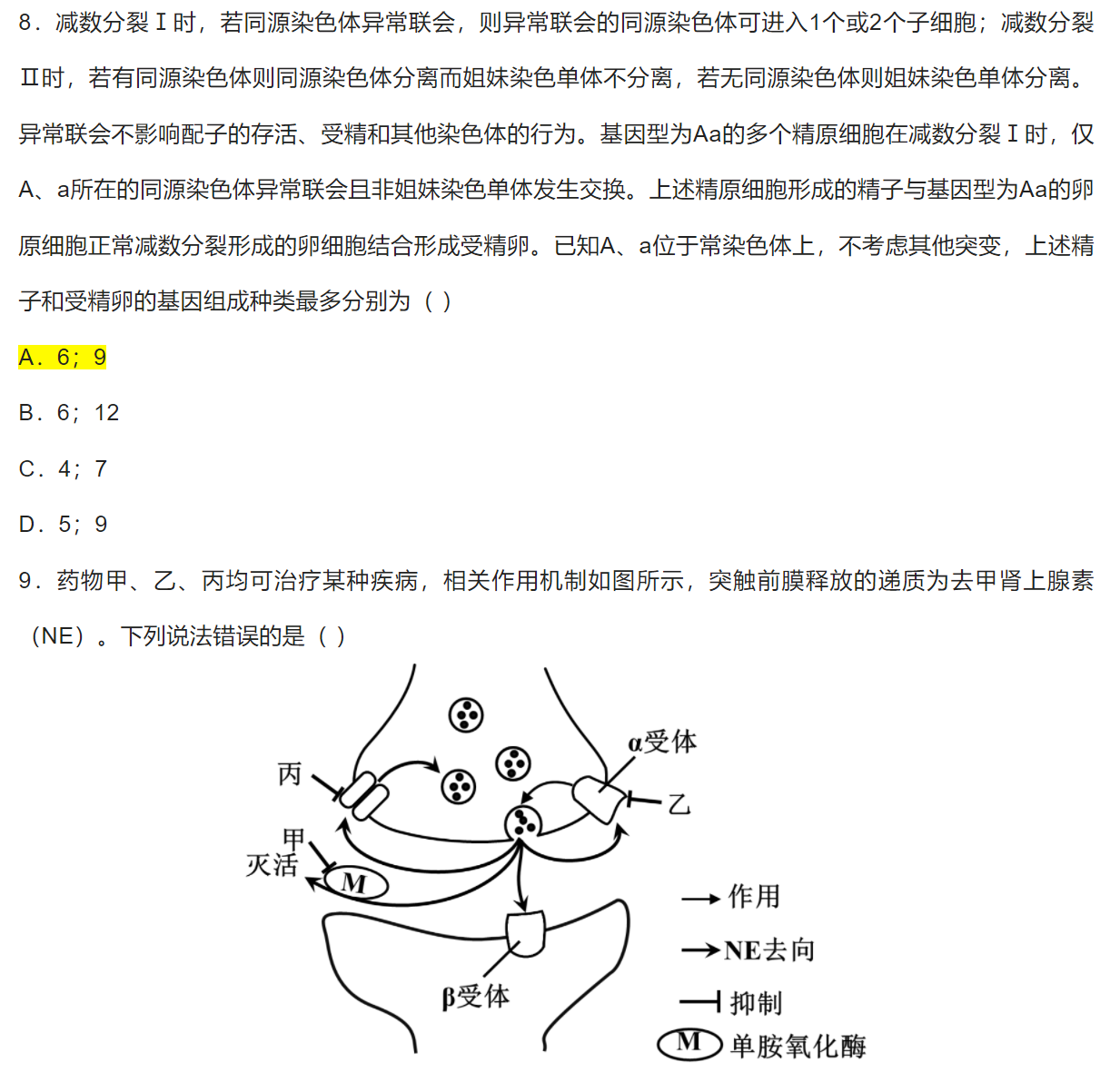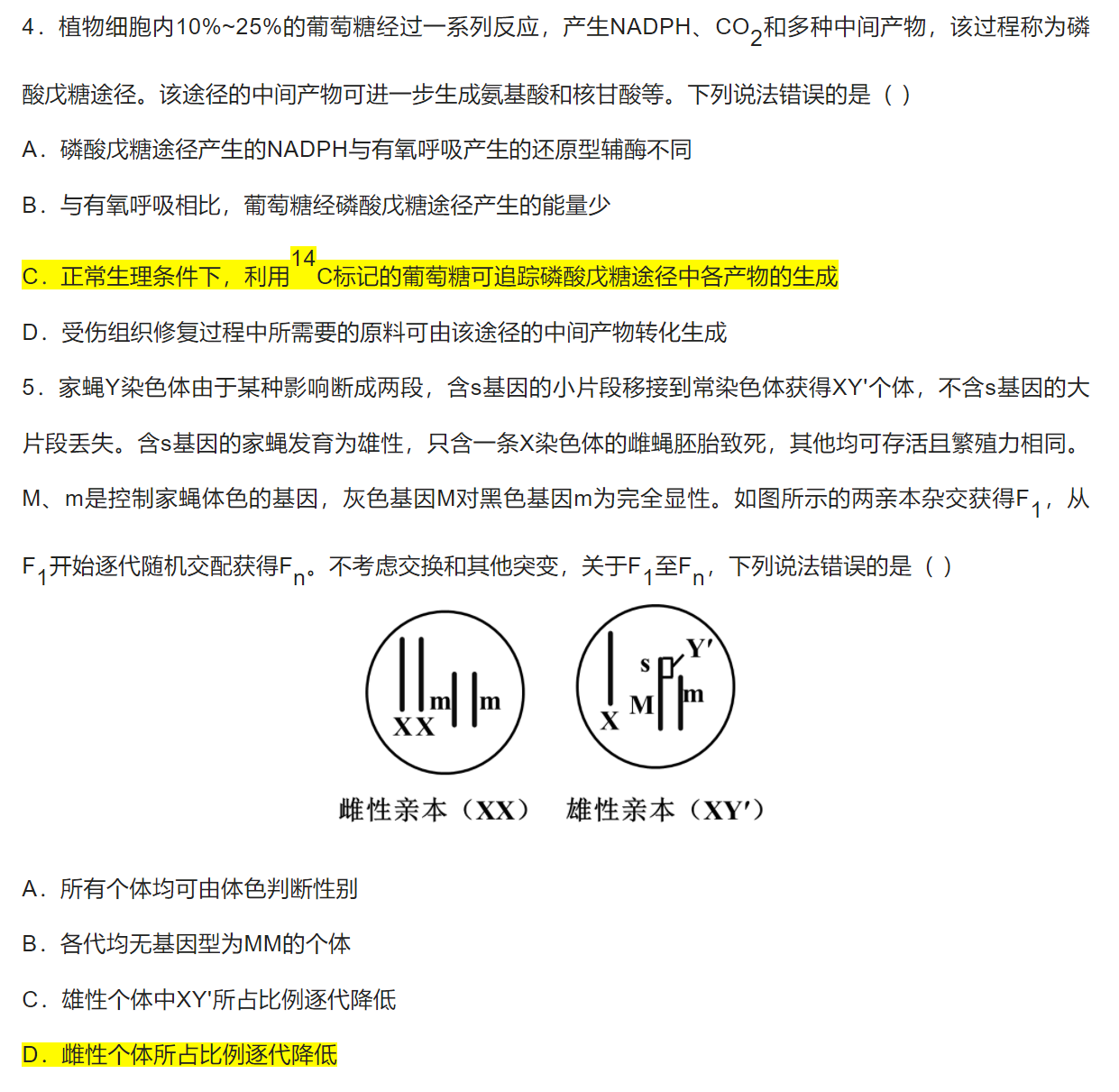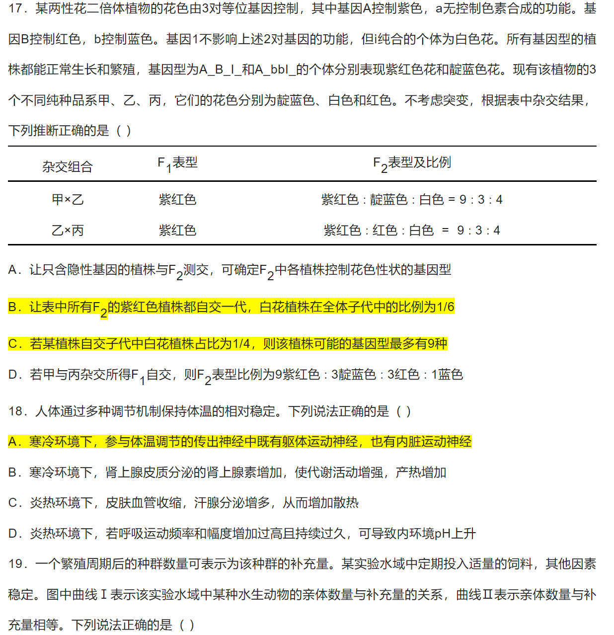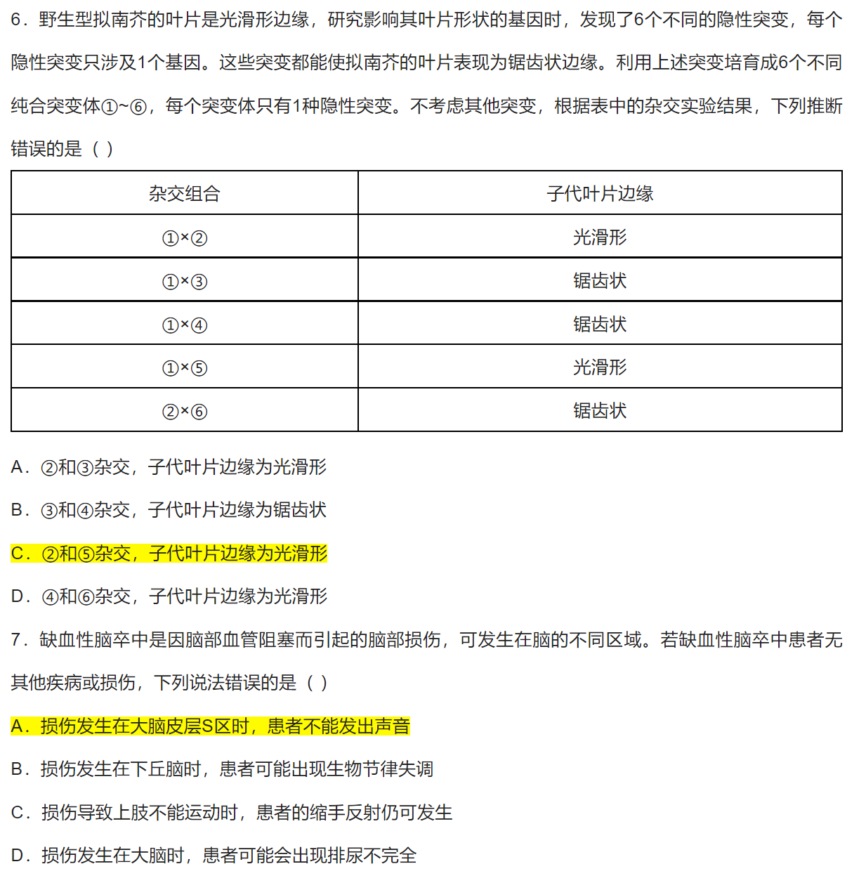 选择题答案为图中标黄选项。