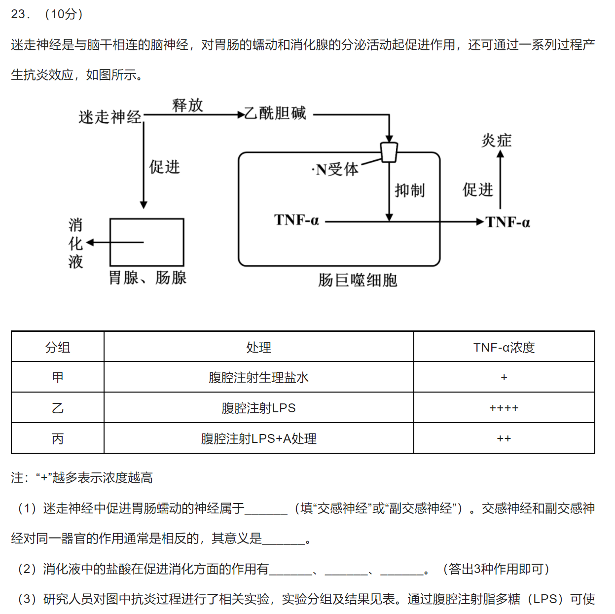 (3)①A抑制TNF-a分泌过程中内质网、高尔基体形成囊泡 ②A抑制肠巨噬细胞中TNF-a基因的转录 ③A抑制肠巨噬细胞中TNF-a基因的翻译