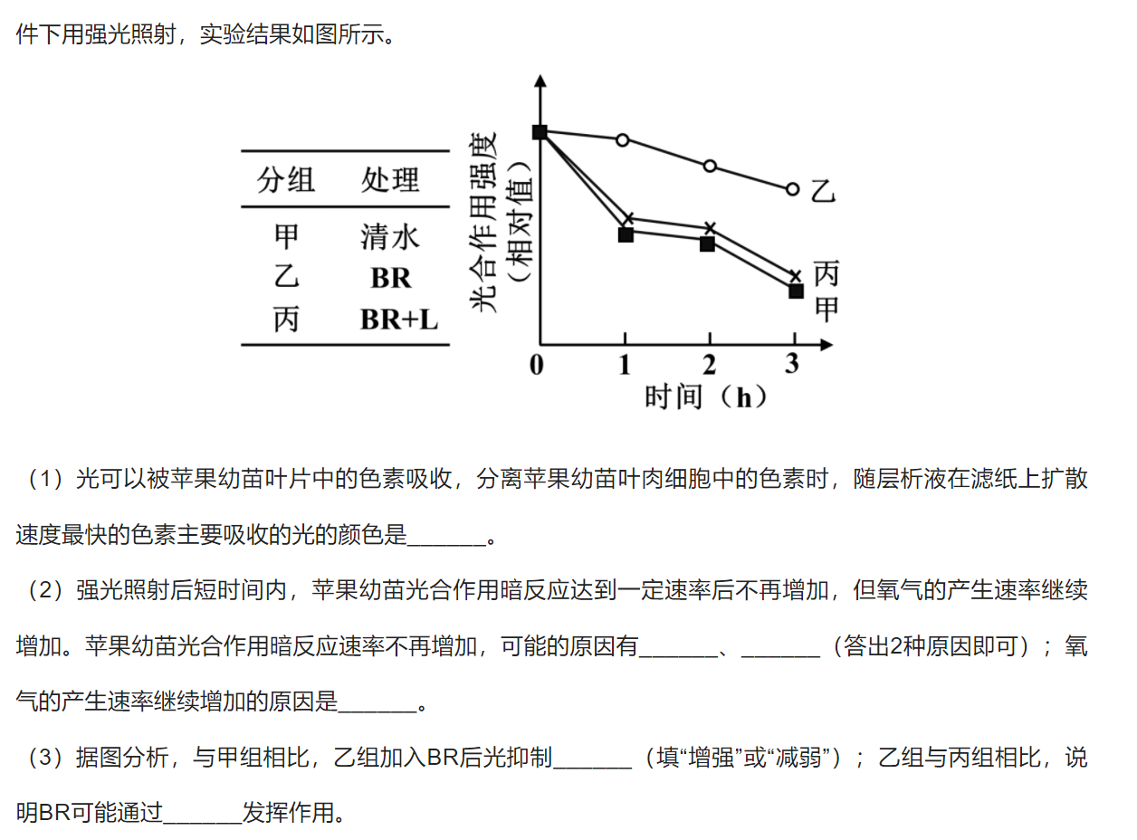 (3)①减弱 ②促进光反应关键蛋白的合成