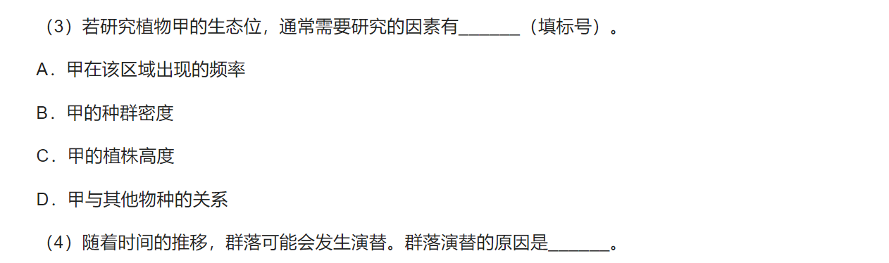 (4)环境不断变化;生物本身不断的繁殖,迁移或者迁徙;种内与种间关系的改变;人类活动的干扰
