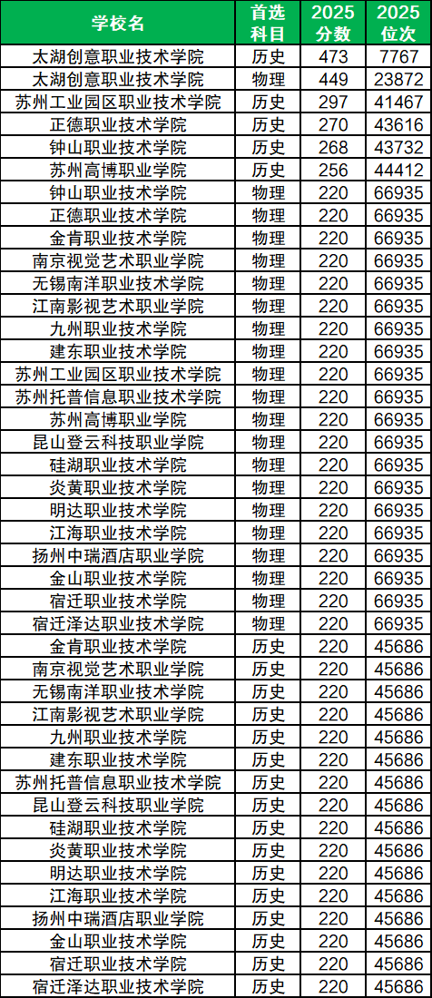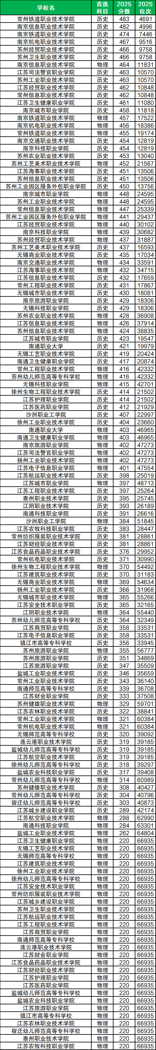 注:本文排名数据来源于校友会2026中国大学排行榜,部分院校未参与排名,排名仅供参考,不可作为择校的唯一依据。下面整理了2025年江苏高考所有省内专科学校最低录取分数线,包含公办大专最低分、民办大专最低分。