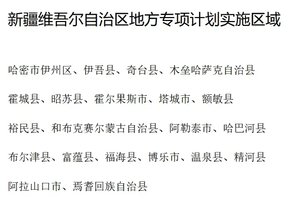 2026新疆地方专项计划实施区域涵盖21个市(县、区),包括霍城县、昭苏县、霍尔果斯市等,具体实施区域名单如下: