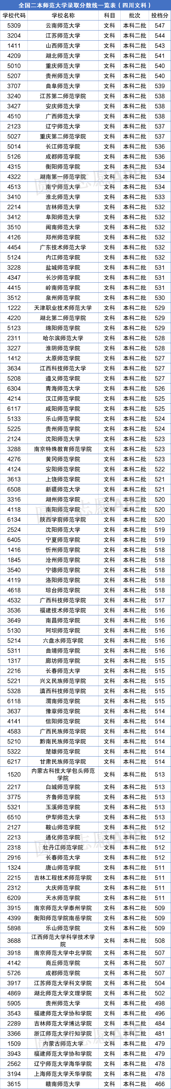 由于师范院校在不同省份的录取分数线都有不同,在本文小编以四川省为例,整理了师范大学2022年在四川省的一本和二本的录取分数线,详情如下:
