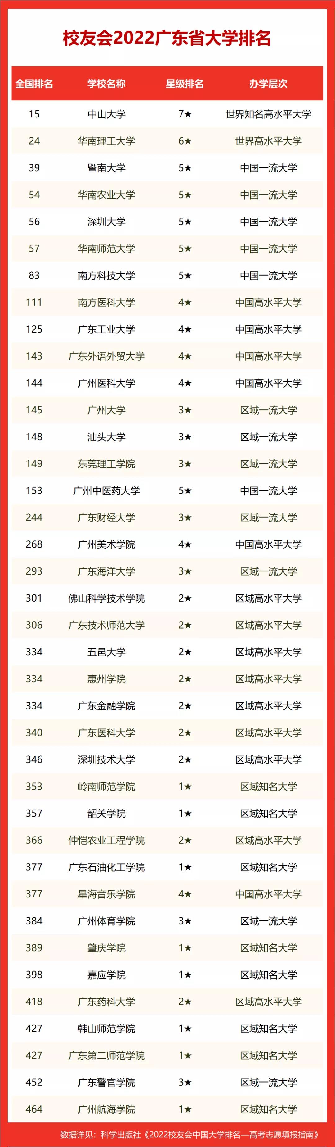 10、广东外语外贸大学——全国第143名,以下为2022年校友会广东省本科大学全部排名。
