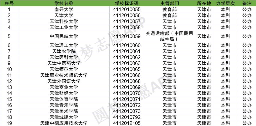 天津市公办本科大学有南开大学、天津大学、天津科技大学、天津工业大学、中国民航大学、天津理工大学等19所大学。