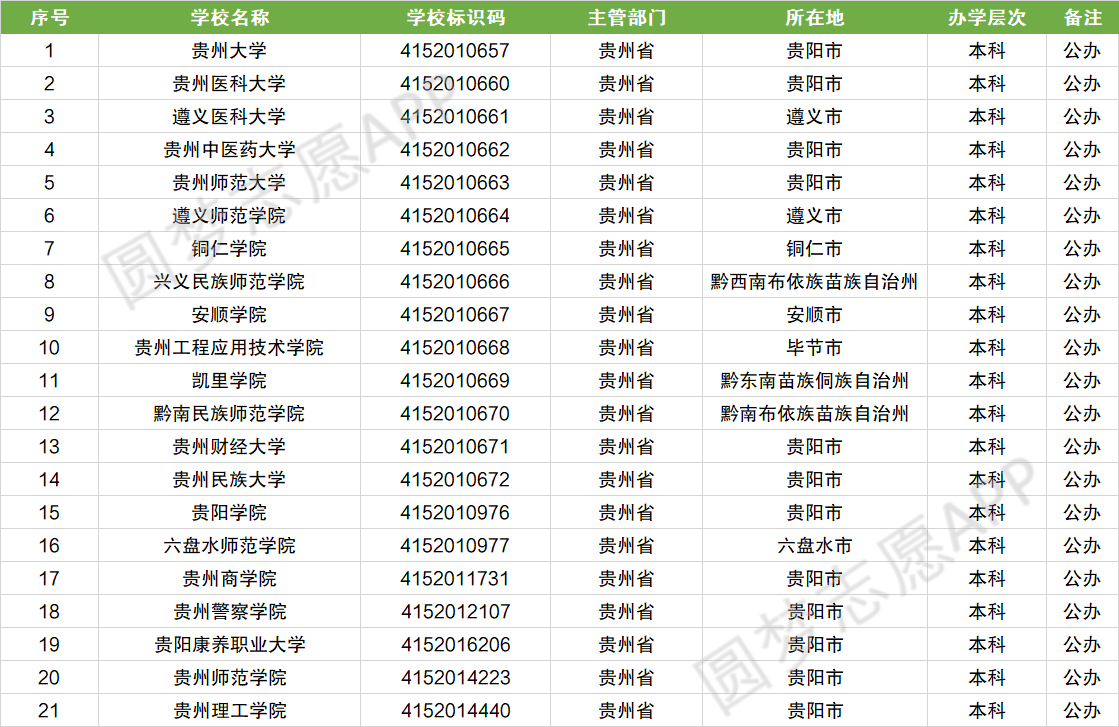 根据教育部最新公布的全国大学名单可知,贵州省内共计有29所本科大学,其中民办本科大学、公办本科大学名单分别如下: