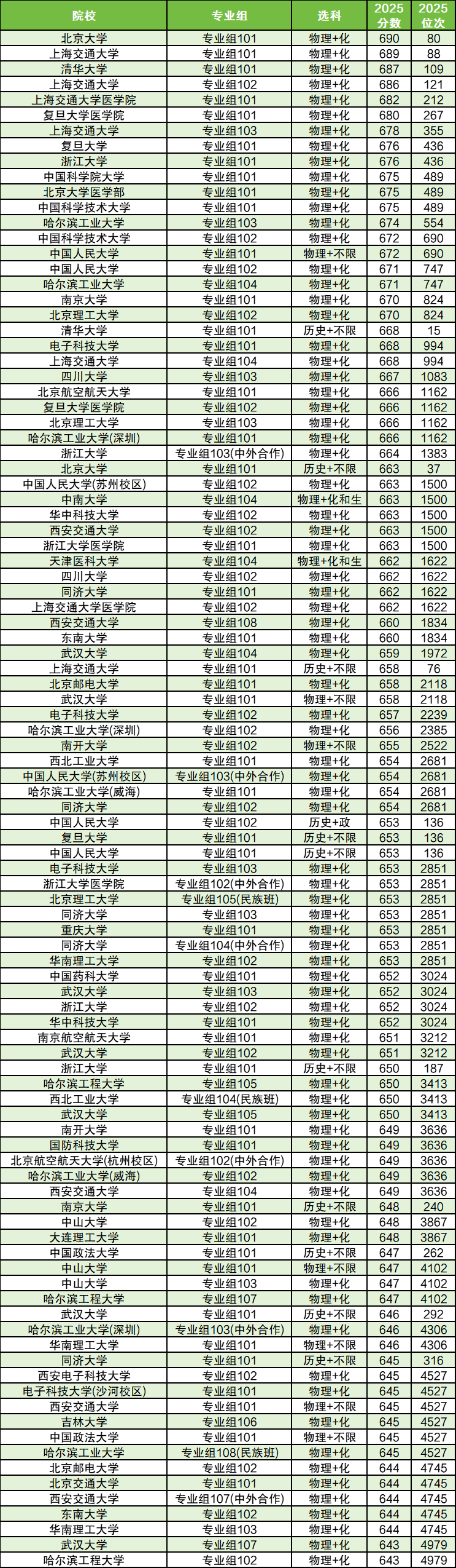 篇幅有限,这里仅展示本科分数线Top100一览表,更多院校分数线可在圆梦志愿查询。