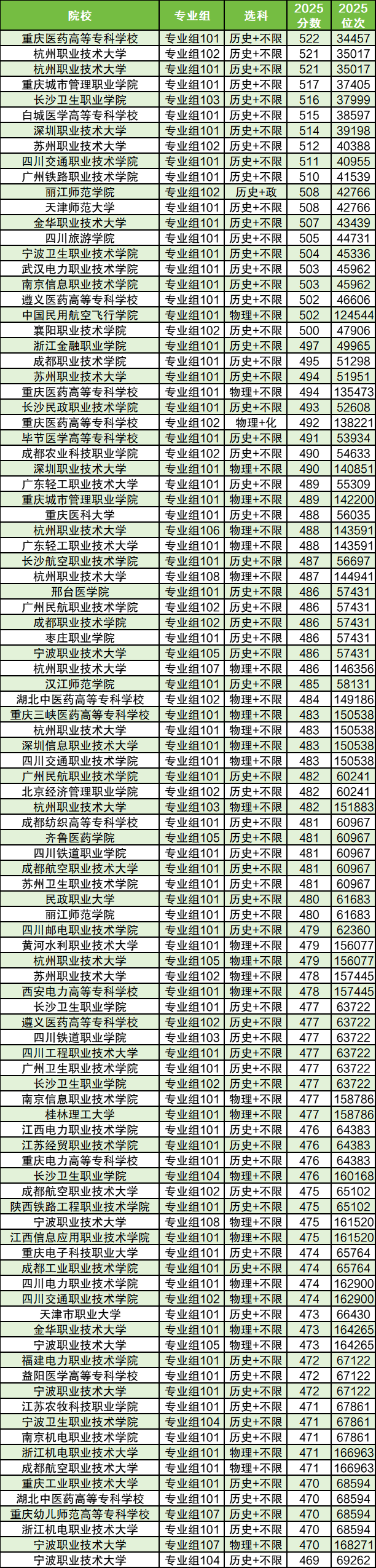 而高分院校中,2025年四川专科分数排名最高的10个大学专业组见下: