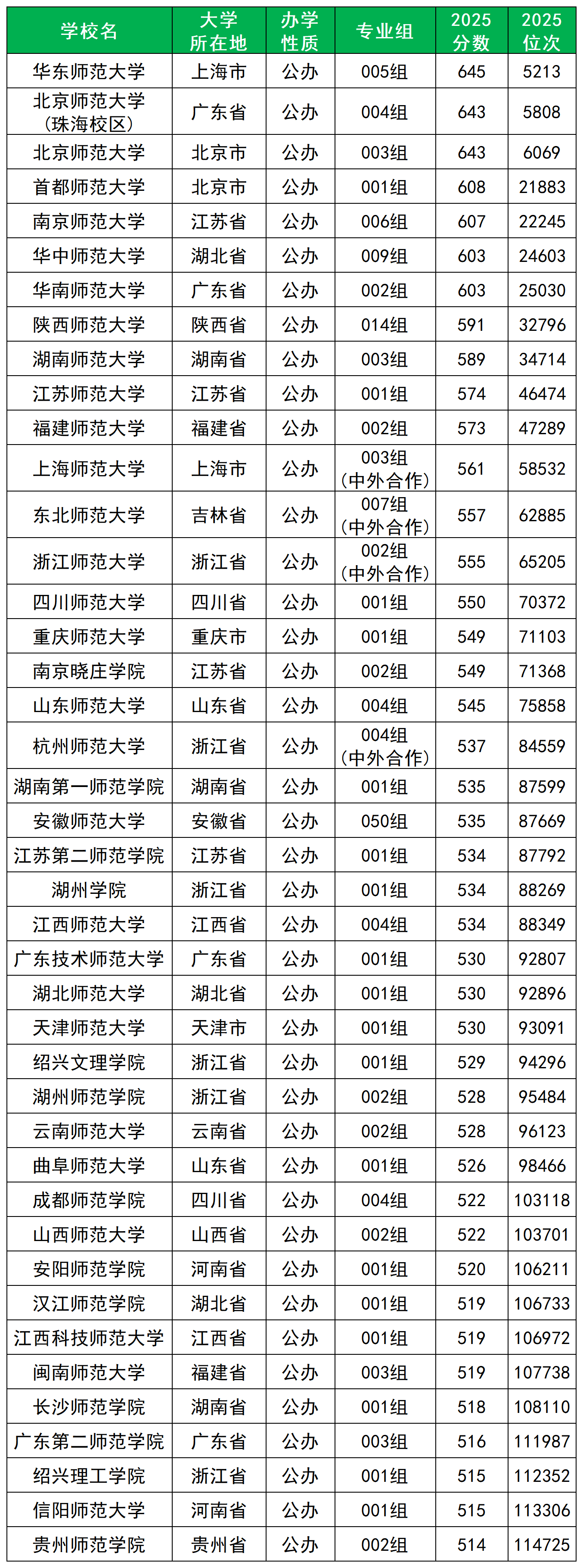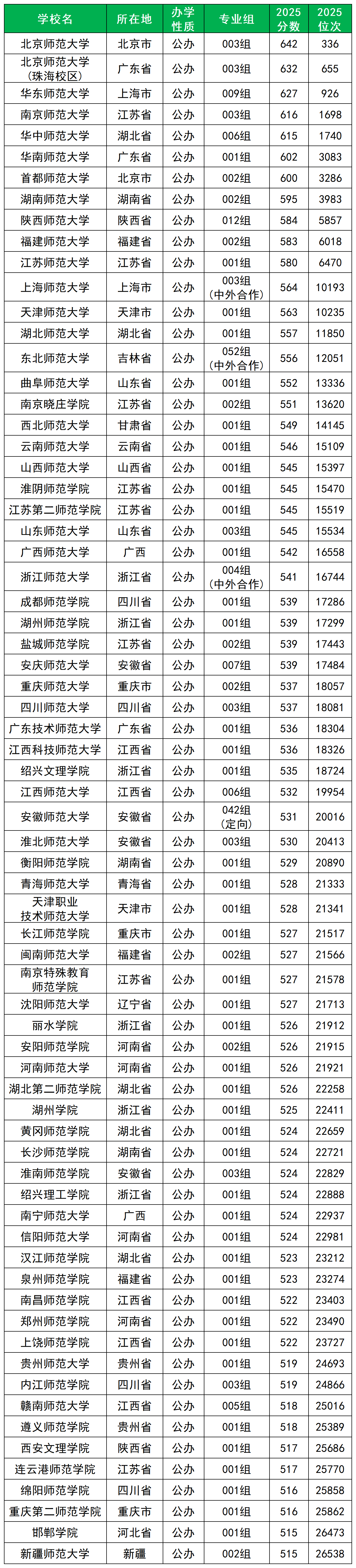 从2025年师范大学在部分省份的录取分数线来看,不论是选科为物理还是历史,只要超过了本科线即可就读本科师范院校。