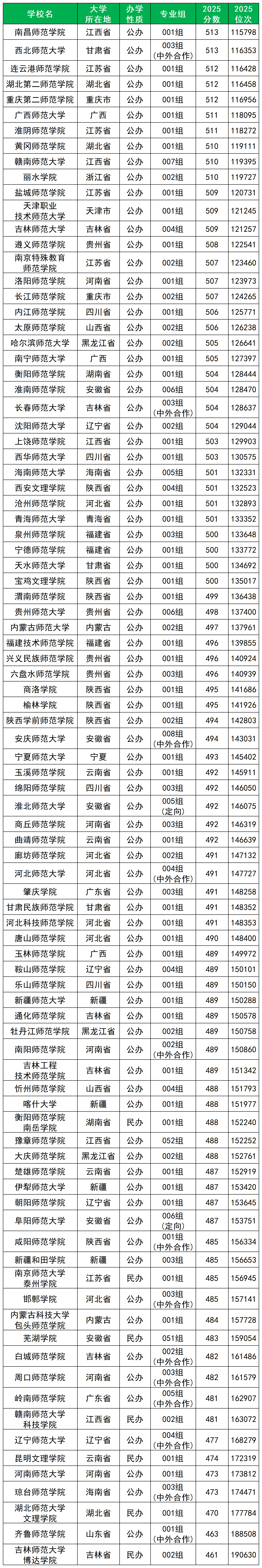 以安徽2025年的招生数据为例,在物理类方面,师范院校的最低录取线在461-645分之间,位次在5213-190630之间;在历史类方面,师范院校的最低录取线在477-642分之间,位次在336-44540之间。