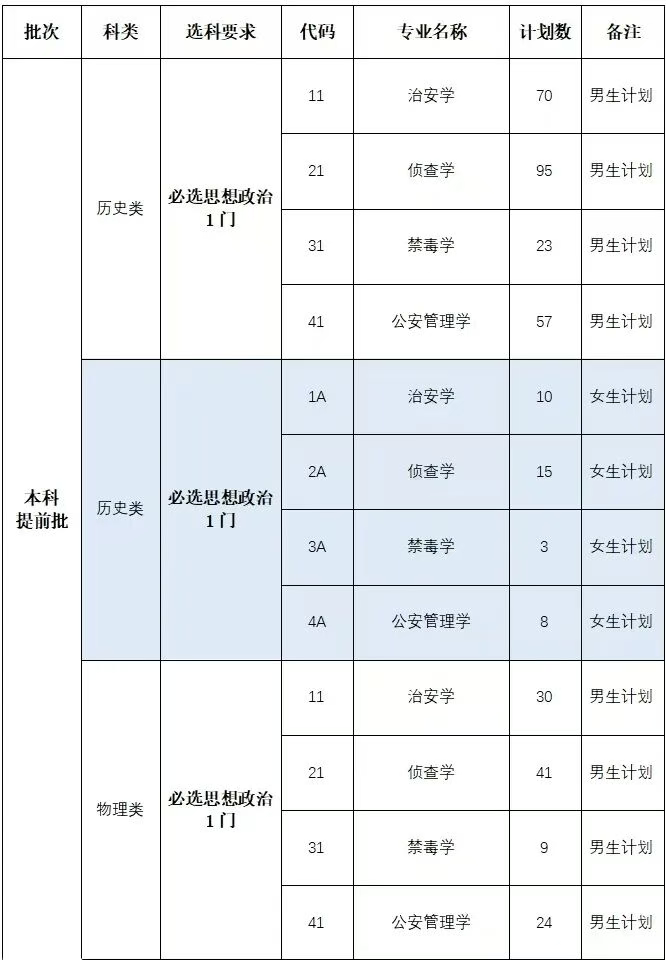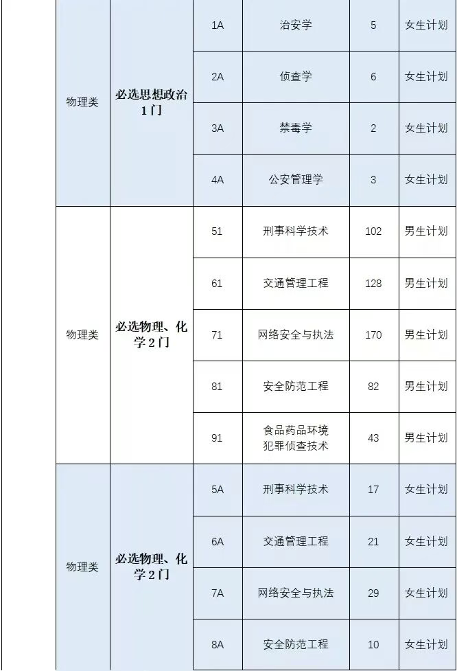 四川警察学院2025年招生计划按照科类、专业、男女进行分配,具体分配情况如下: