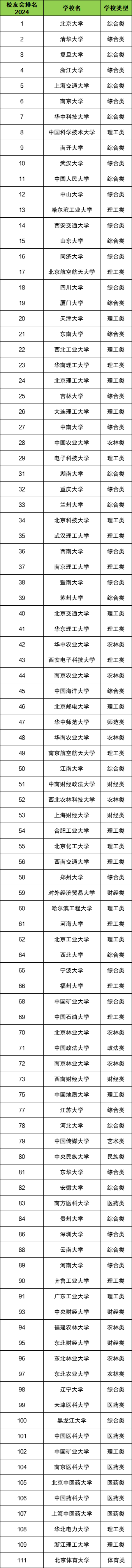 结合在公办本科招生院校和校友会2024年全国大学排行榜,为大家整理了以下排名表(只筛选了公办本科前100强)。