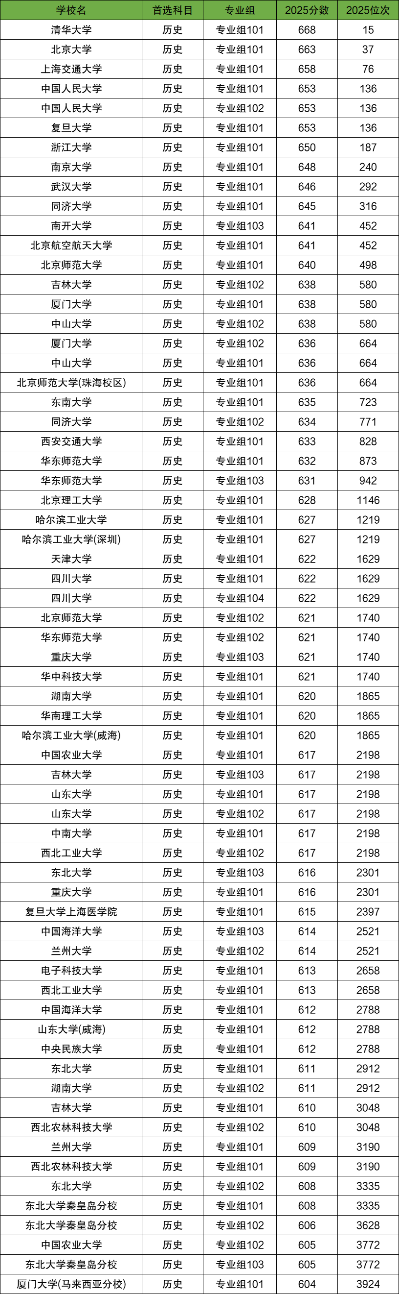 复旦大学专业组101,2025年录取分数线653分;