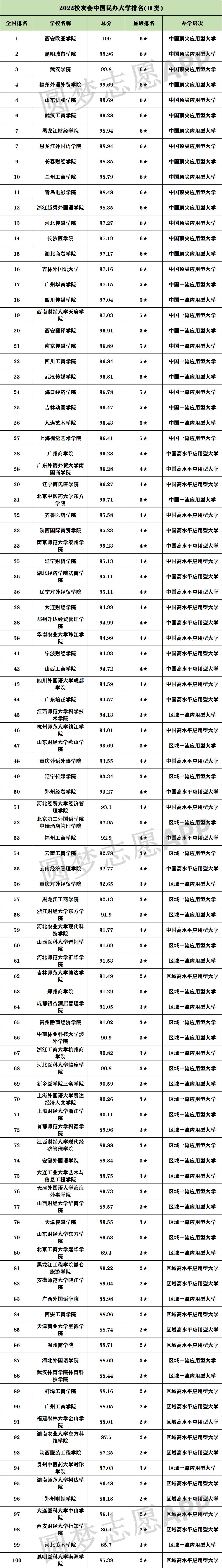 2022全国民办大学排名名单已经出炉,全国民办大学前一百强是谁?自己心仪的学校在全国排名中排第几?民办大学分数线又是多少呢?今天小编为大家带来最全最新全国民办大学排名名单及录取分数线,一看究竟吧。