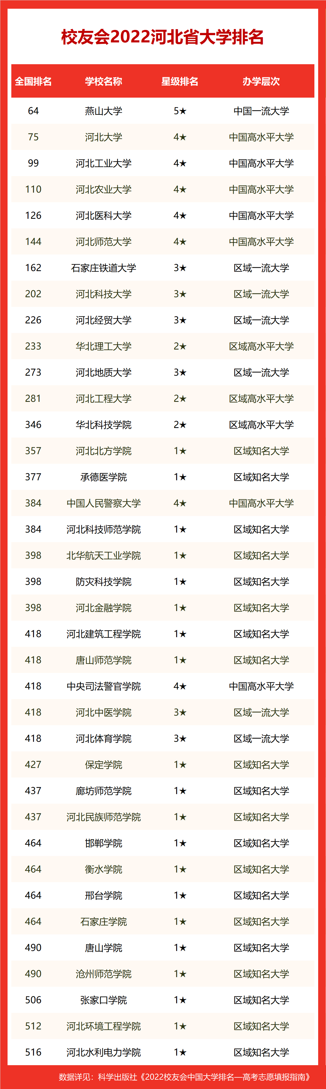 10、华北理工大学——全国第233名,以下为2022年校友会河北省本科大学全部排名。