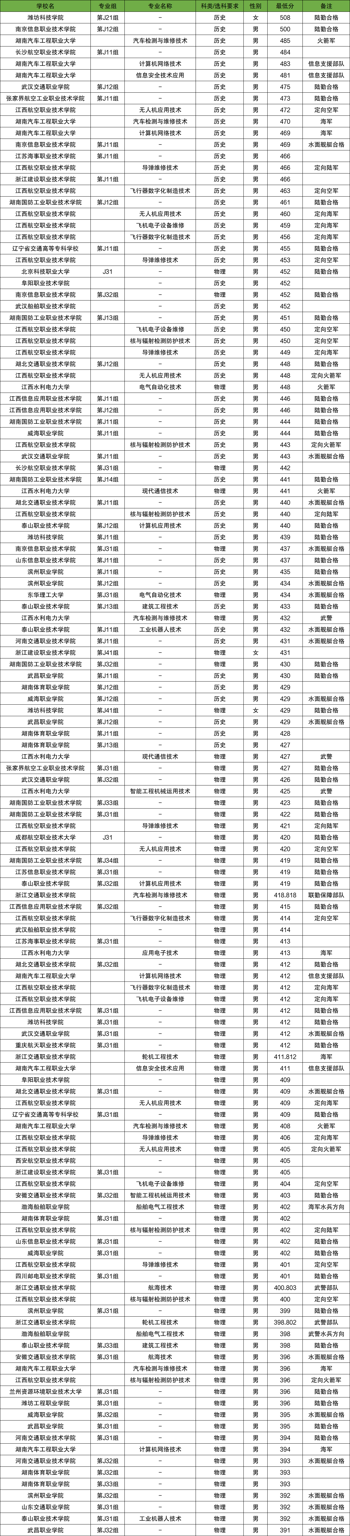 下面是2025年收分最低的几所定向士官院校: