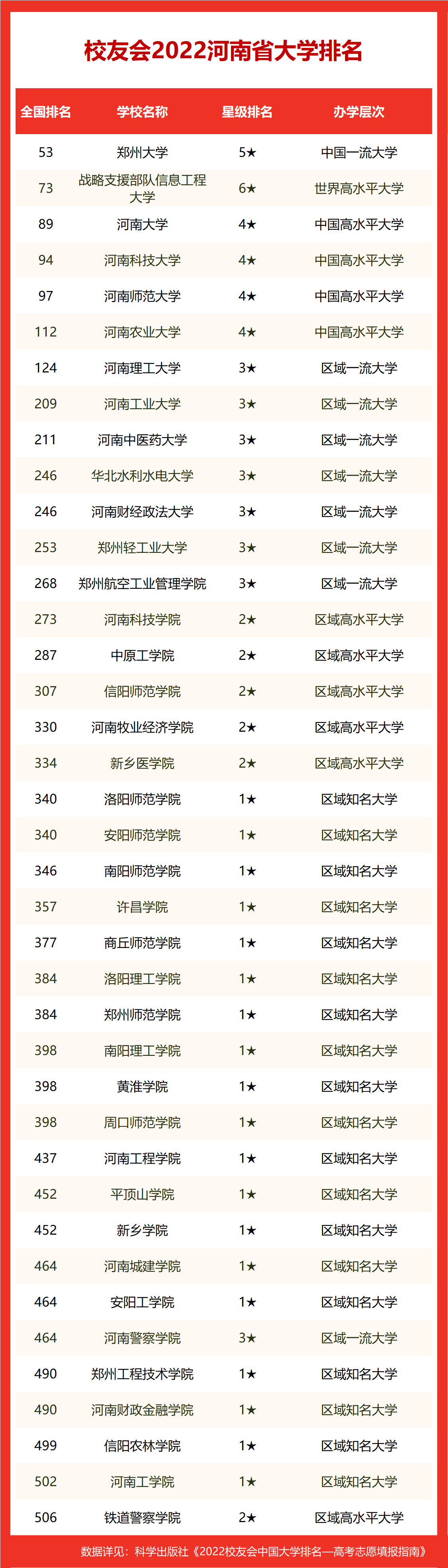 10、华北水利水电大学——全国第246名,以下为2022年校友会河南省本科大学全部排名。