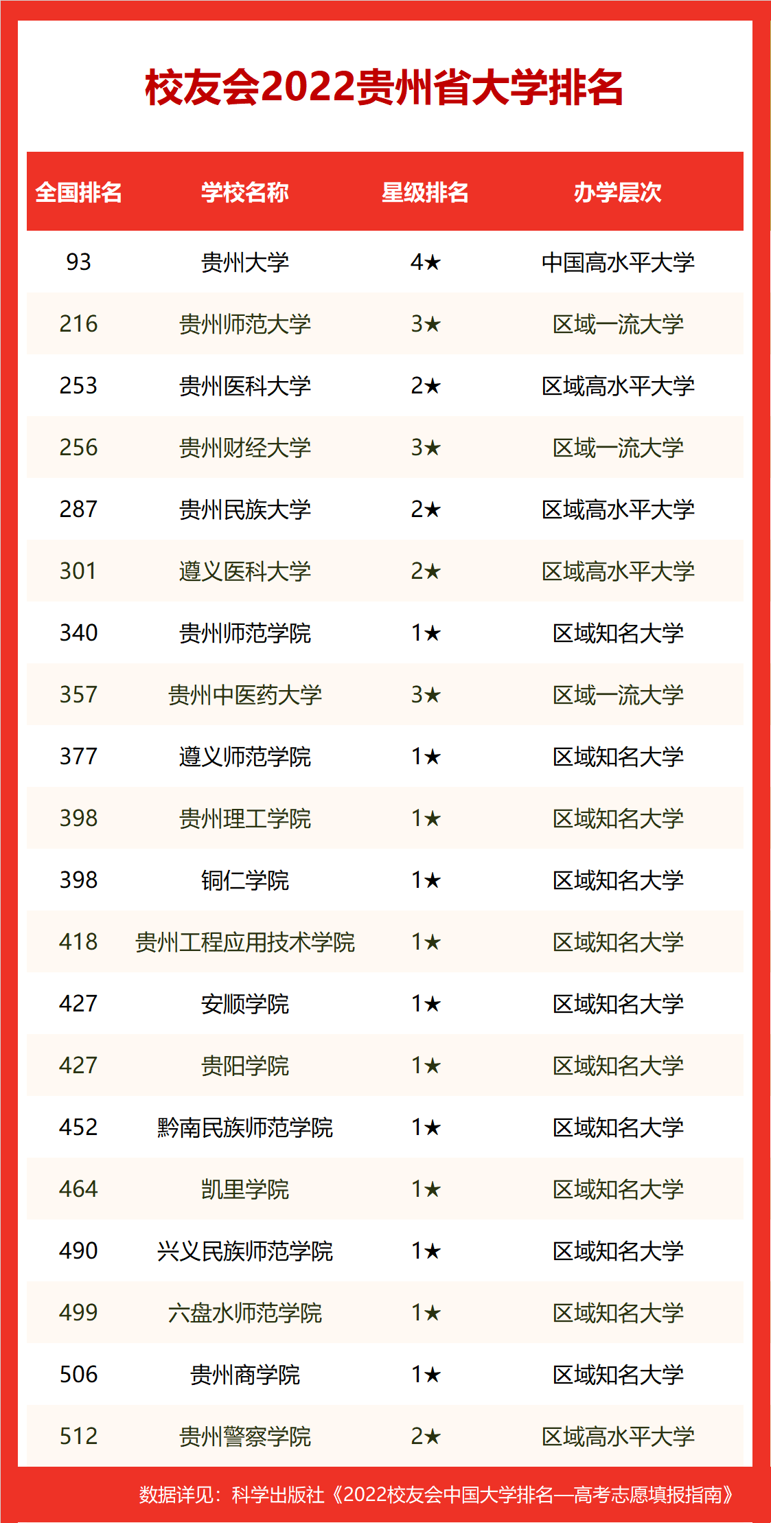 10、贵州理工学院——全国第398名,以下为2022年校友会贵州省本科大学全部排名。