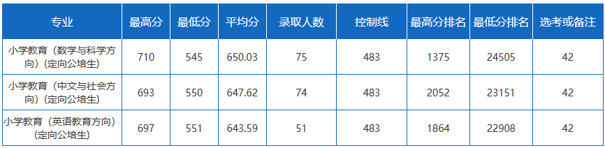 篇幅有限,这里仅以海南民族大学为例,分析公费师范生招生分数线情况: