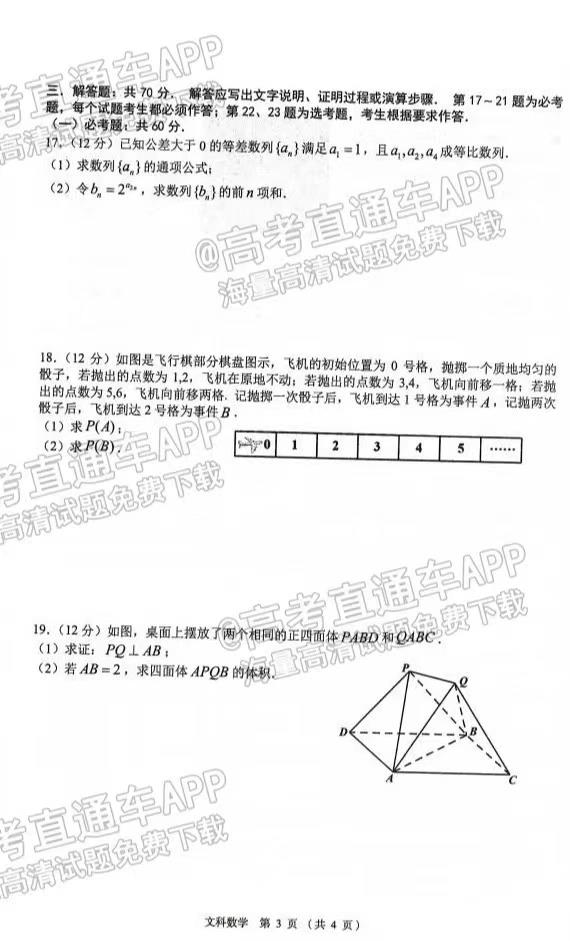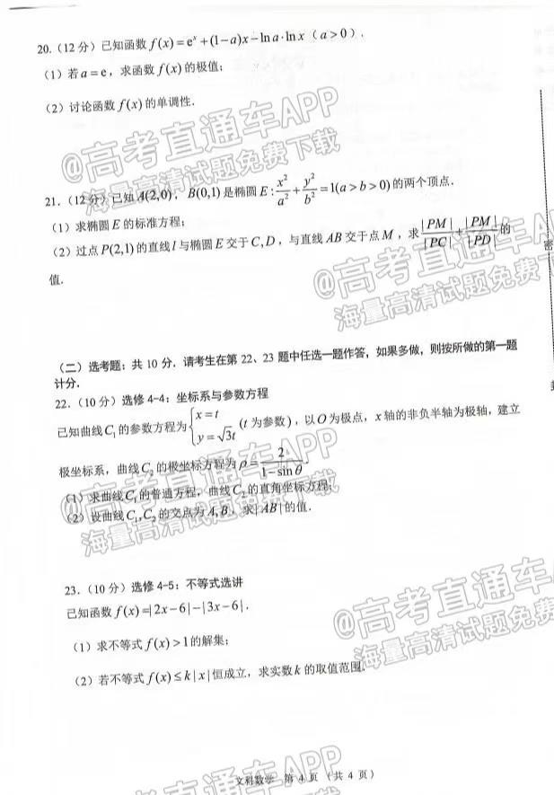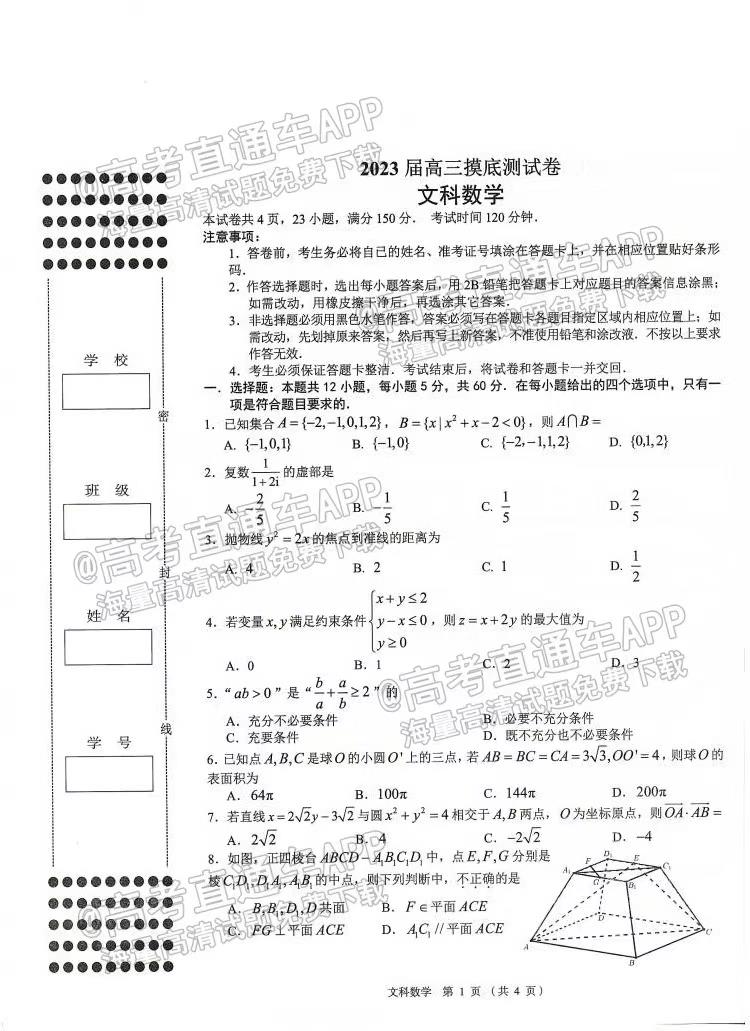 一. 2023南昌高三零模试卷文科数学汇总