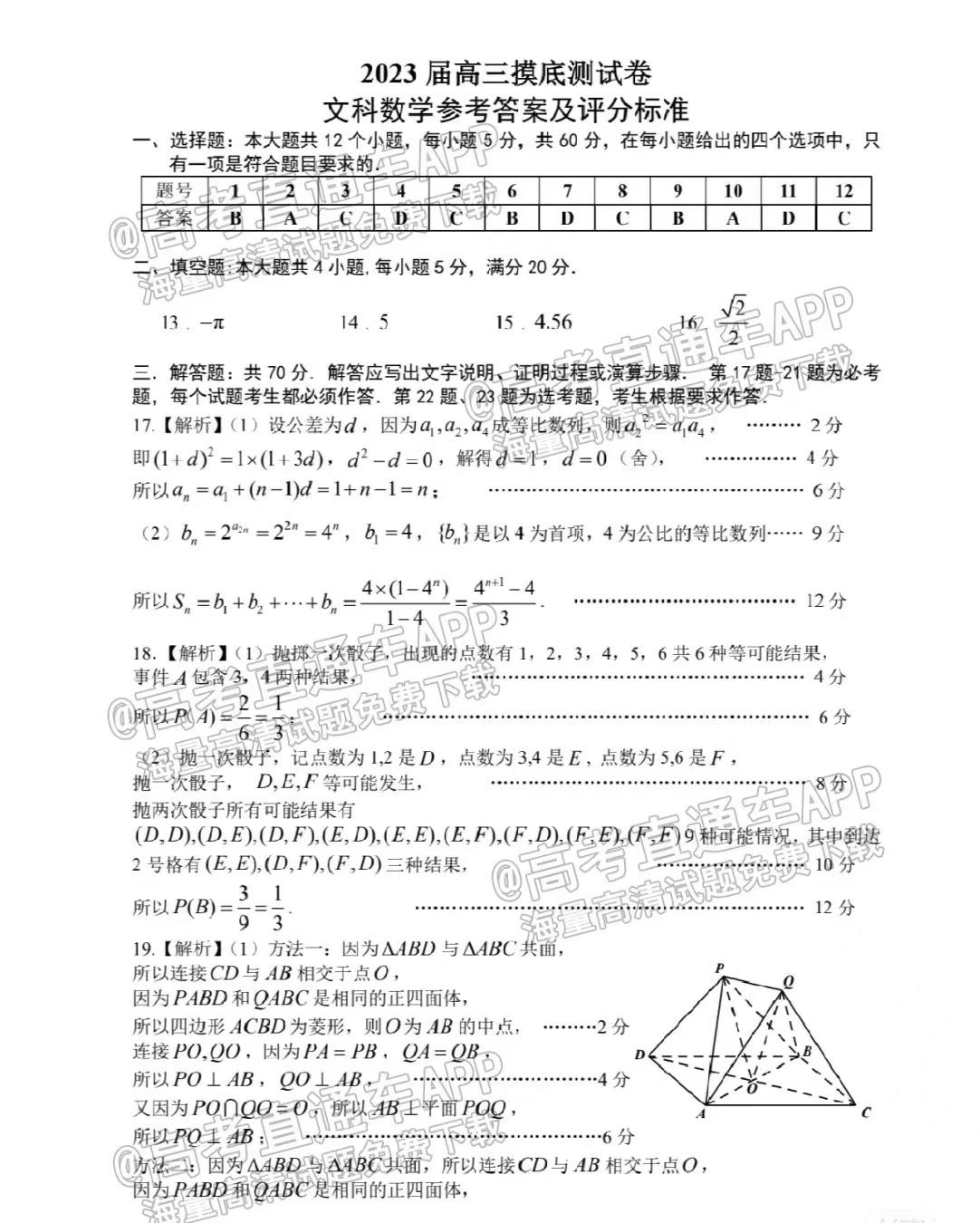 二. 2023南昌高三零模答案解析文科数学汇总
