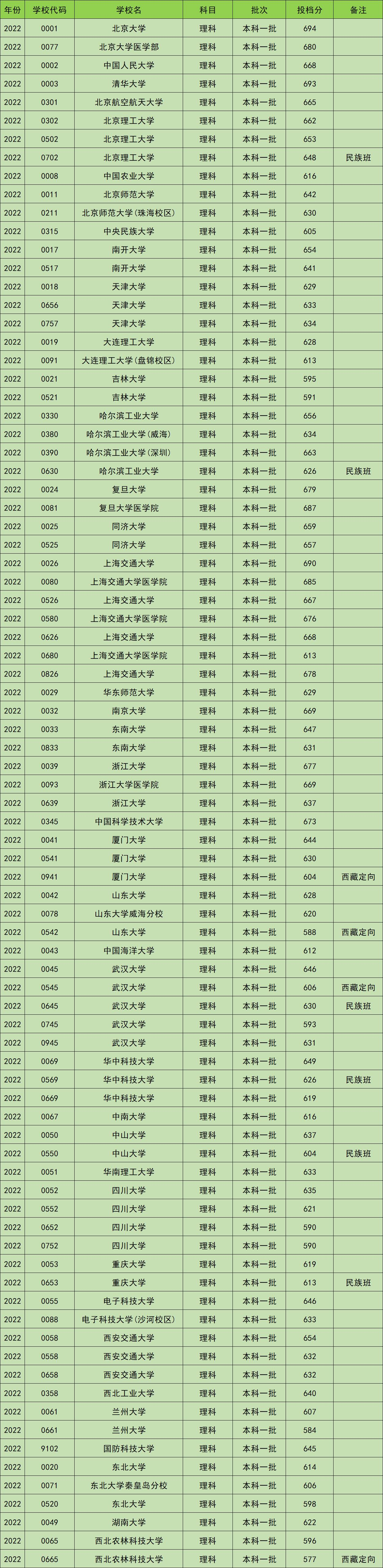 北京大学在四川理科类考生中录取分数线最高为694分;西北农林科技大学西藏定向班在四川理科类考生中录取分数线最低为577分。