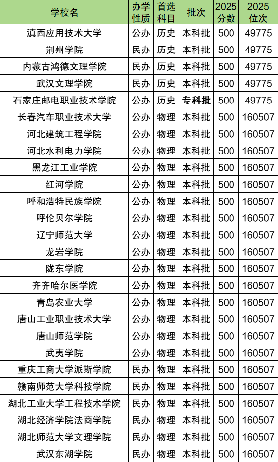 2025年河北高考历史类550分排名是49775,对应能上的大学有武汉文理学院、内蒙古鸿德文理学院、荆州学院、滇西应用技术大学等。