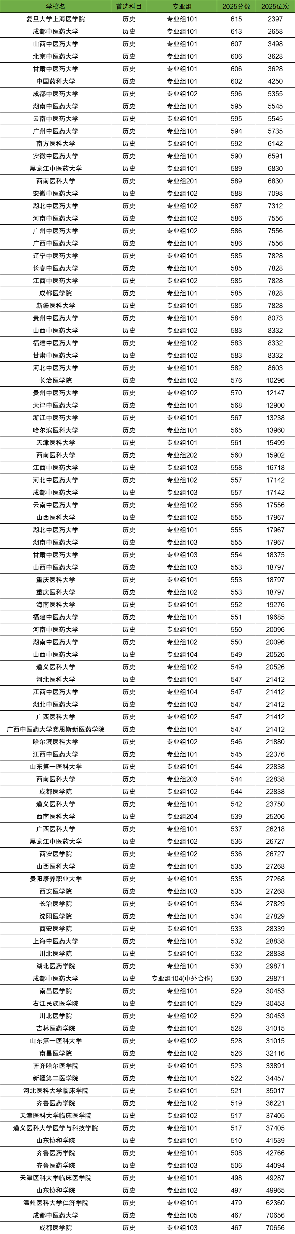 下文为大家附上2025年医学类院校在四川历史类本科批录取分数线,供大家参考: