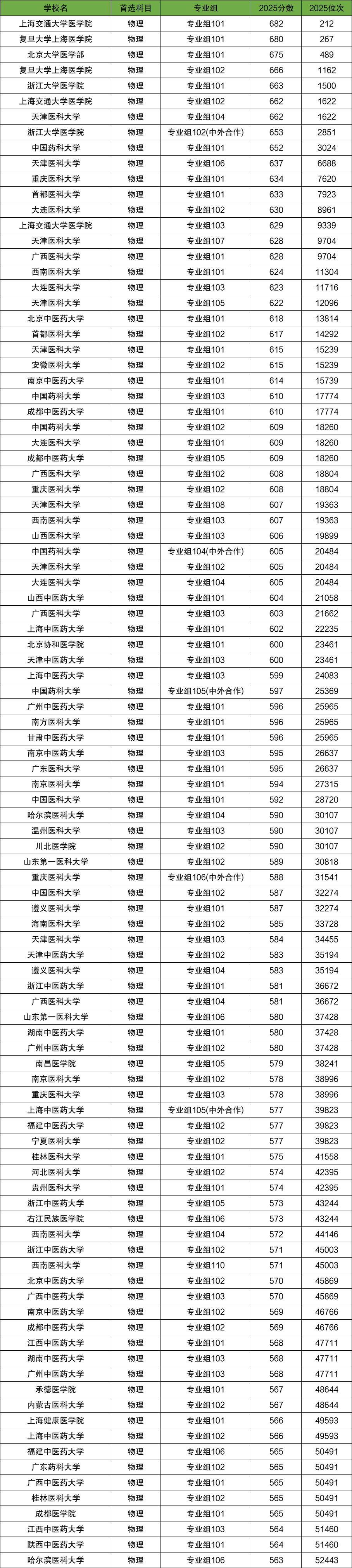 下文为大家整理了全国医科大学在四川物理类本科批录取分数线前100专业组一览表,供2026届考生参考: