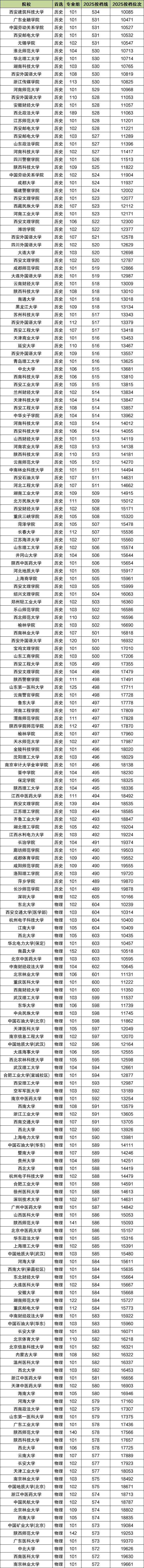 三、陕西高考位次对应大学