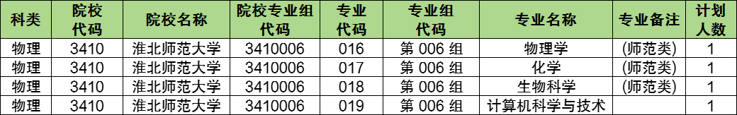 第006组:专业组代码为3410006,包含物理学、化学、生物科学、计算机科学与技术。