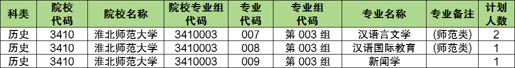 第003组:专业组代码为3410003,包含专业汉语言文学、汉语国际教育、新闻学。