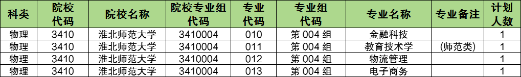 第004组:专业组代码为3410004,包含专业金融科技、教育技术学、物流管理、电子商务。