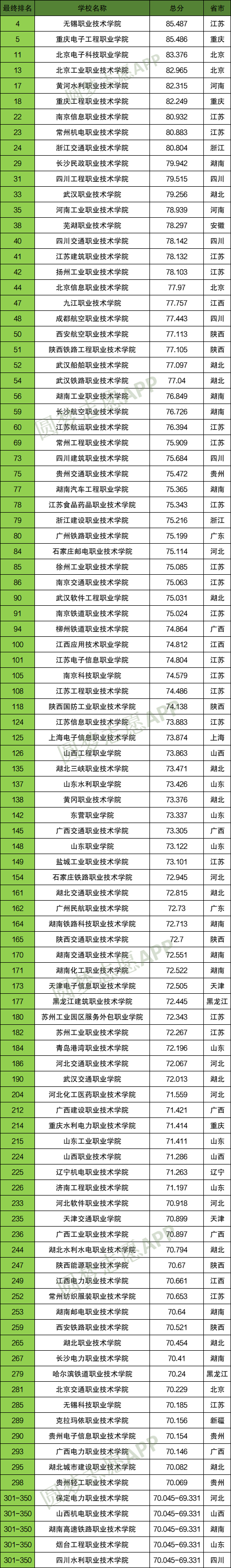 注:以上排名来自GDI高职2023年全国大学最新排行榜。