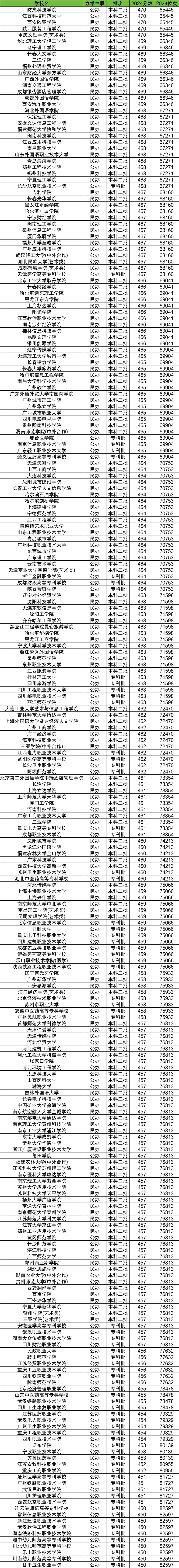 下面是文科450到470分能上的所有大学名单汇总,数据较多,请滑动查看。