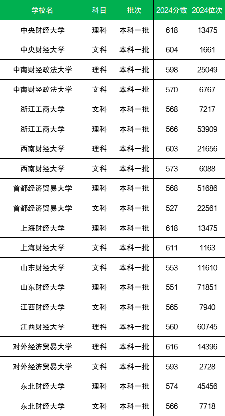 篇幅有限,财经类大学最低录取分数线可直接见下表: