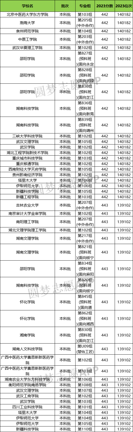 2023年湖南省物理类录取位次为14万名左右(13.9万到14.1万名)对应的分数段为442-443分,可以报考32所学校的46个专业组,其中12所公办,20所民办。