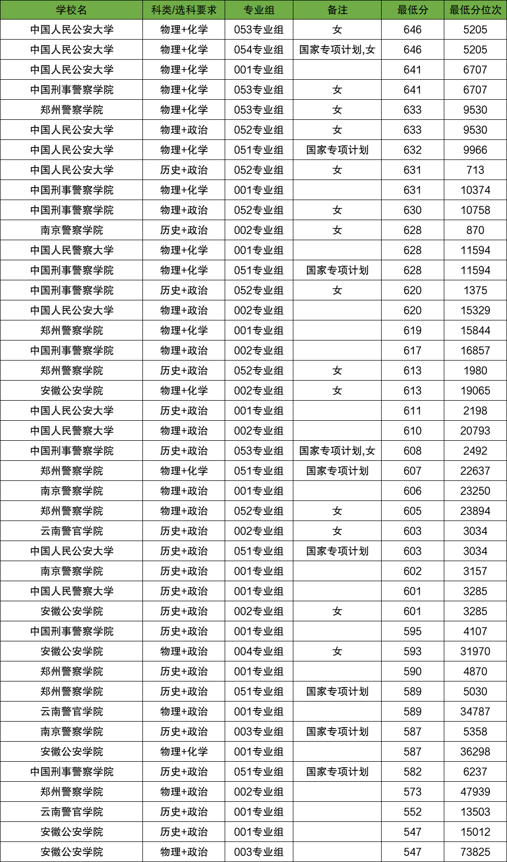 全国警校录取分数线及排名位次2025