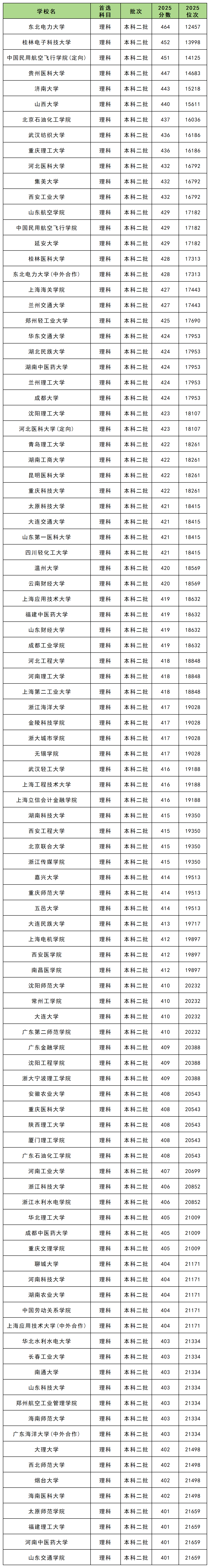 如下为各位展示的是2025年新疆理科公办二本院校的Top100录取分及位次情况: