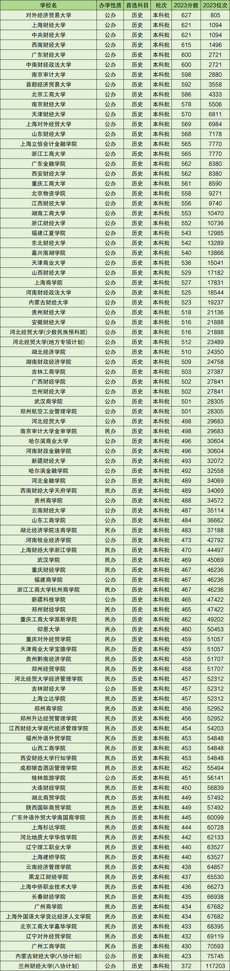 2023年全国财经类本科院校录取线位于372分到627分之间,各院校录取线存在较大差异,其中在211财经类院校名单及分数线如下: