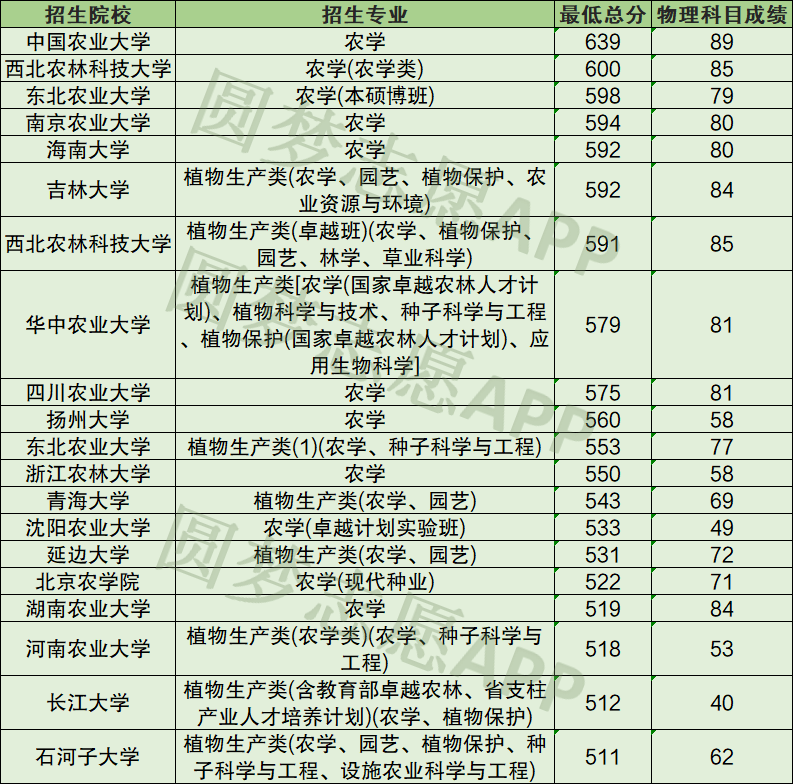 以上3所大学的农学专业的物理科目成绩都很高,但这是因为中国农业大学、西北农林科技大学、东北农业大学的总分要求很高,因此物理科目的成绩就很高。