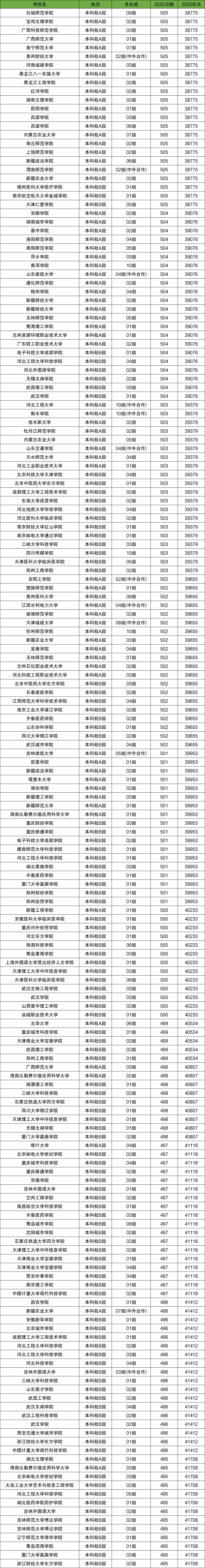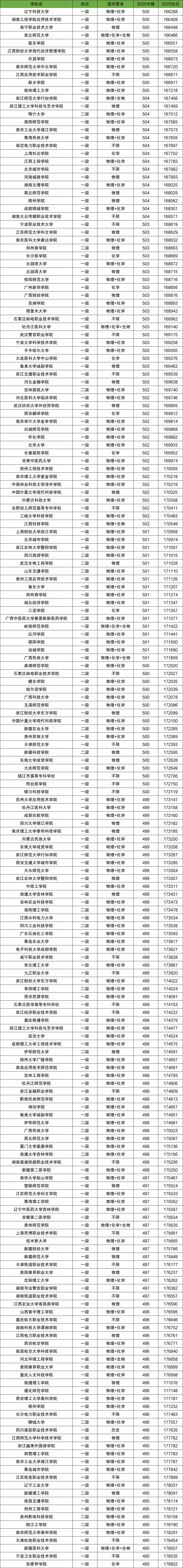 2025年各大院校录取分数线已相继出炉,那么对于2026届考生来说,500分左右的成绩能上什么大学呢?本期我们整理了2025年高考招收录取分数线名单,从中筛选出2025年在各省份录取分数线为500分左右的大学,供2026届考生参考。