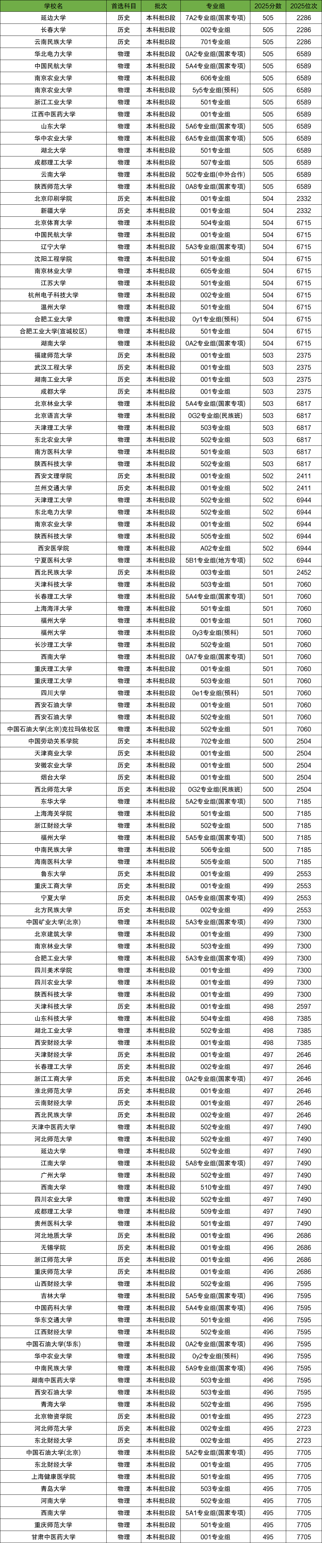 历史类考生,500分左右可以填报34所公立本科大学:延边大学、长春大学、新疆大学、湖南工业大学等。