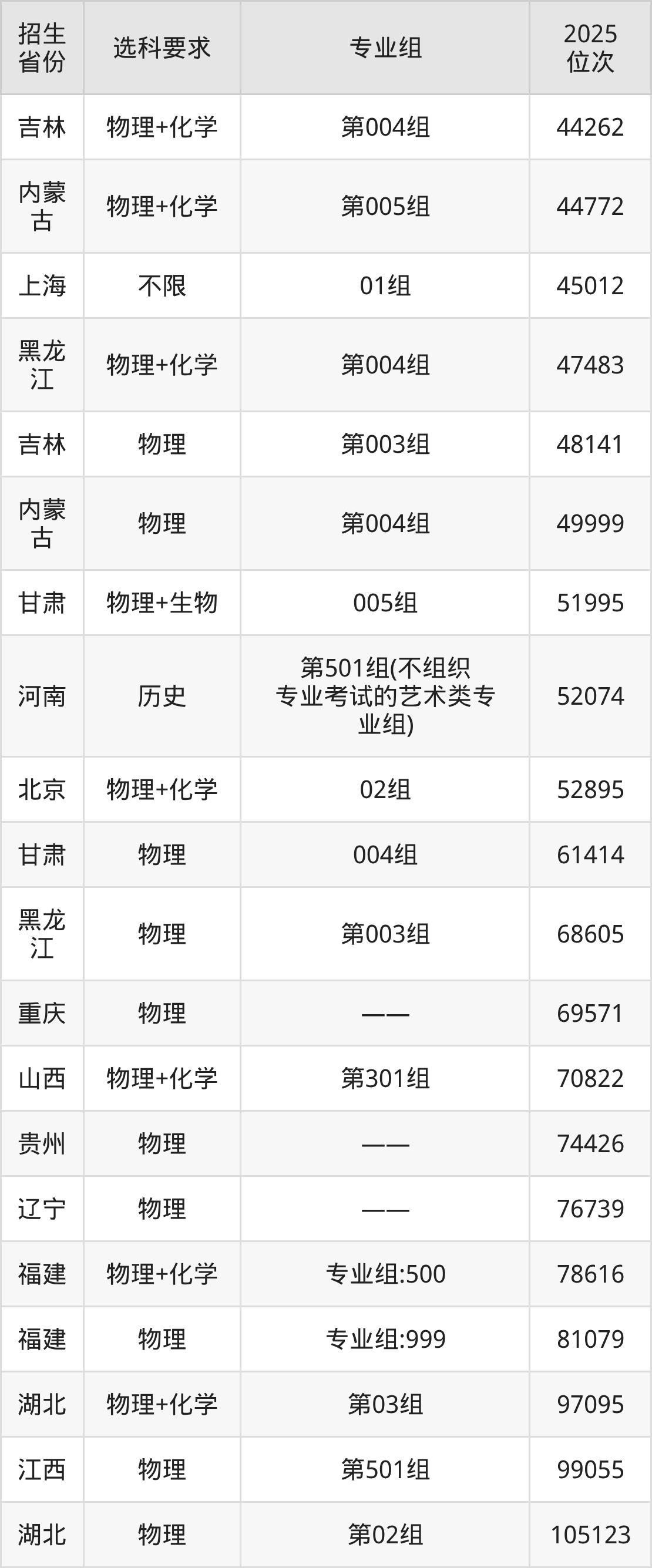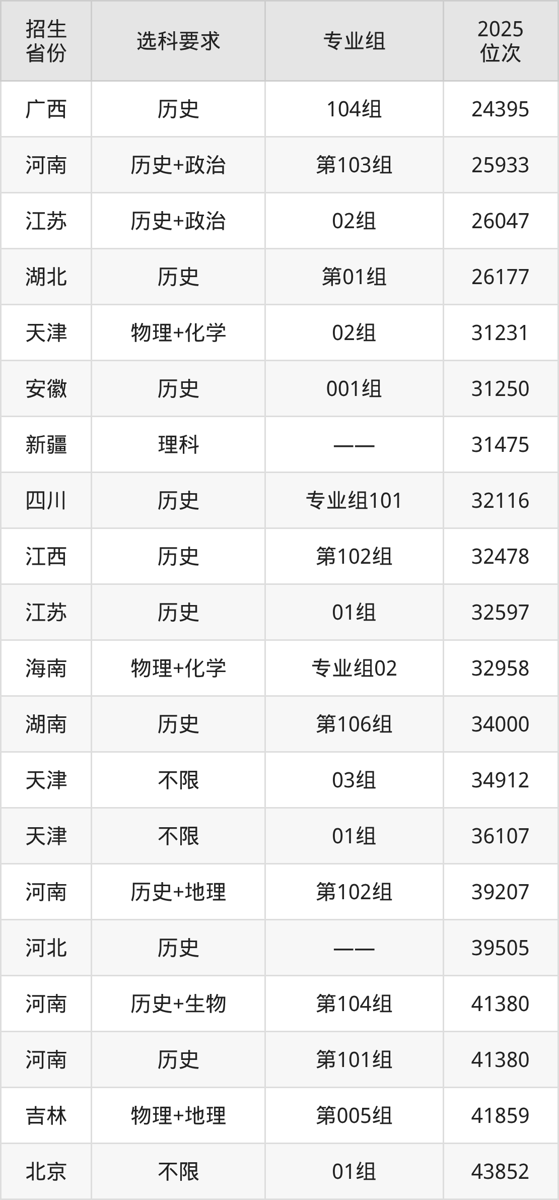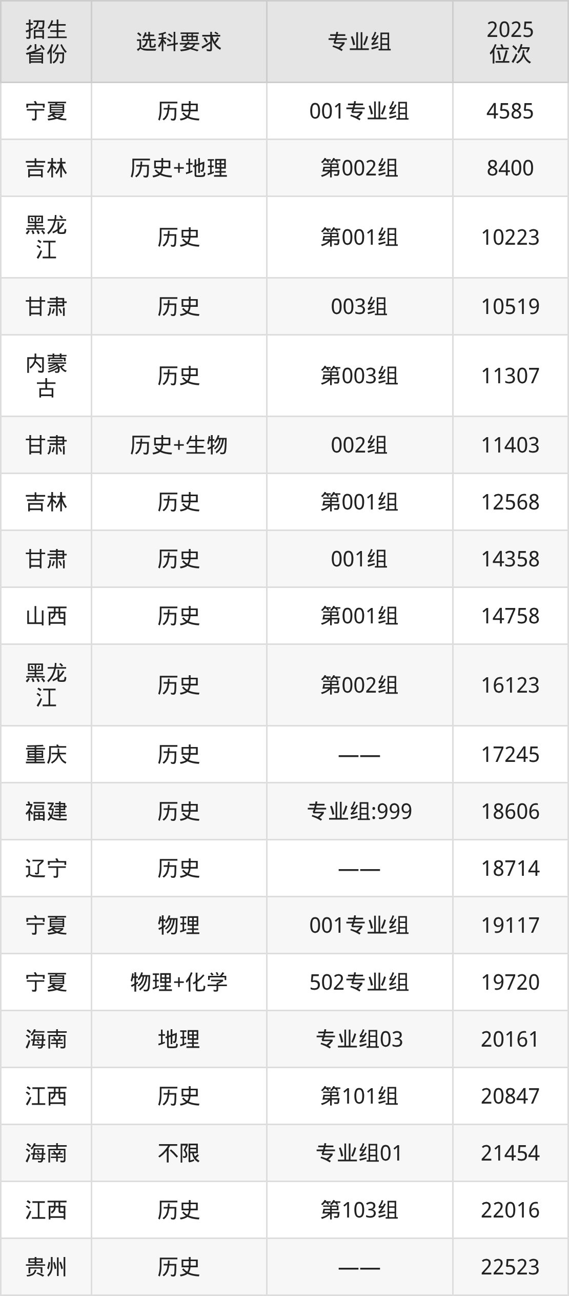 平顶山学院2025年在全国各省的位次差异较大,最高位次是4585位(宁夏历史类)、最低位次是271596位(山东)。各省具体位次请看下图: