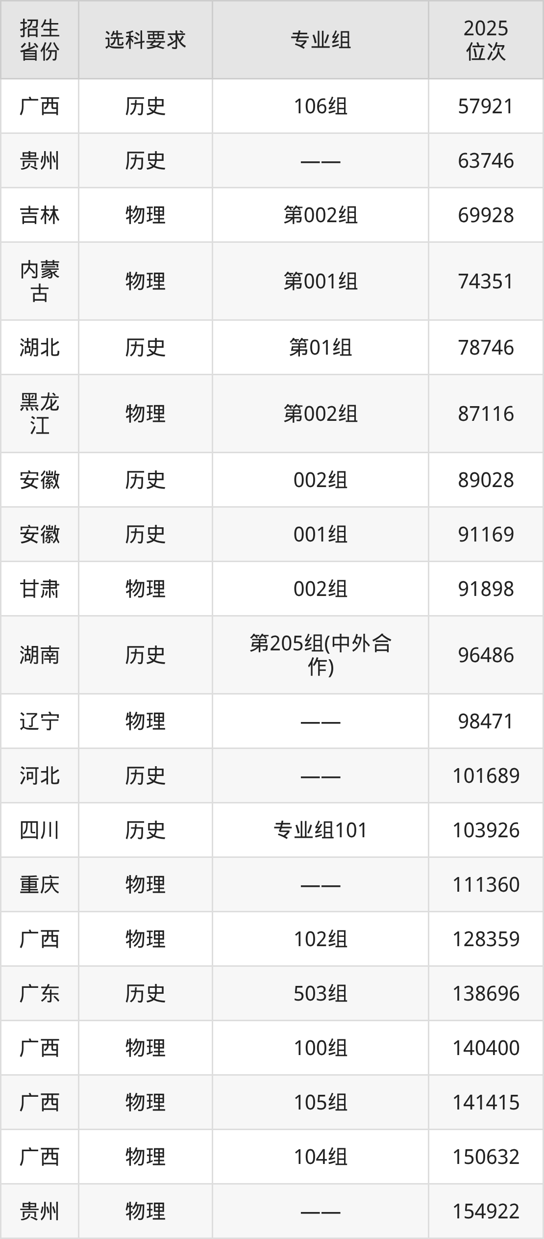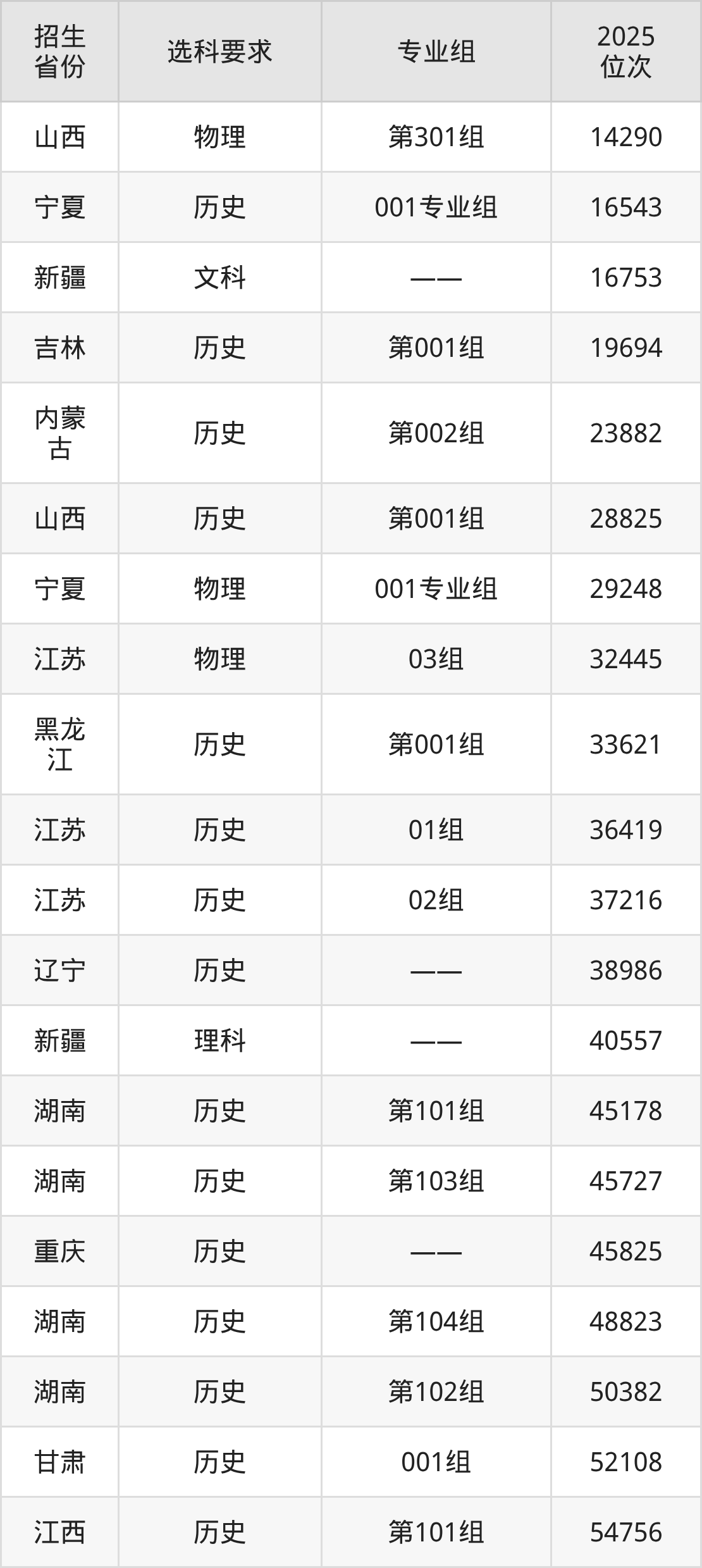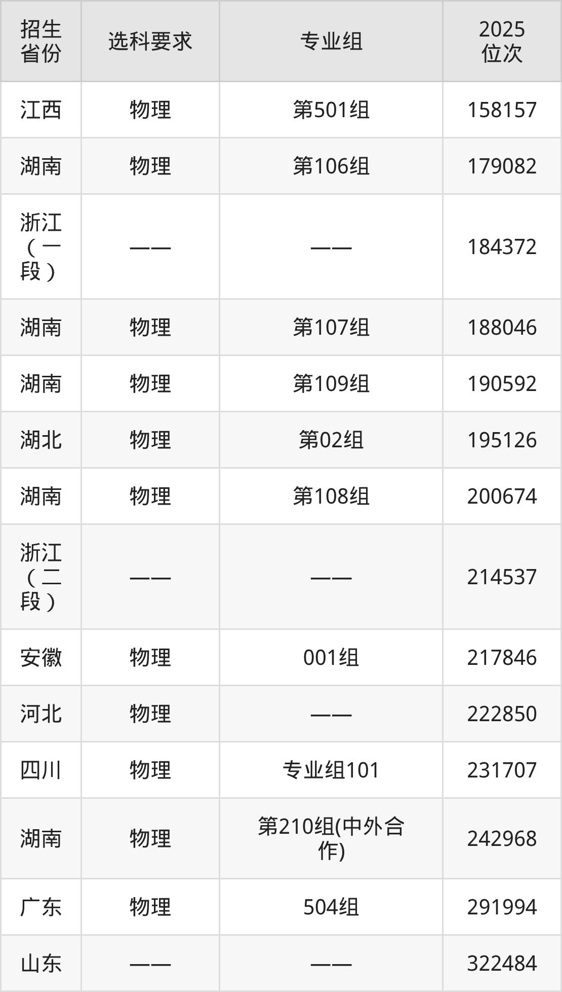 湖南工业职业技术学院2025年在全国各省的位次差异较大,最高位次是14290位(山西物理类)、最低位次是322484位(山东)。各省具体位次请看下图: