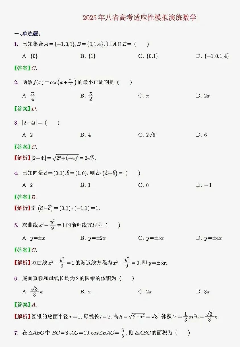 八省联考2025山西各科考试时间安排在1月3日-5日,本文收集汇总了此次适应性考试的语文、数学、英语、物理、化学、生物、历史、政治、地理九科的试卷及答案,山西考生可在各科考试结束后前来查阅核对。